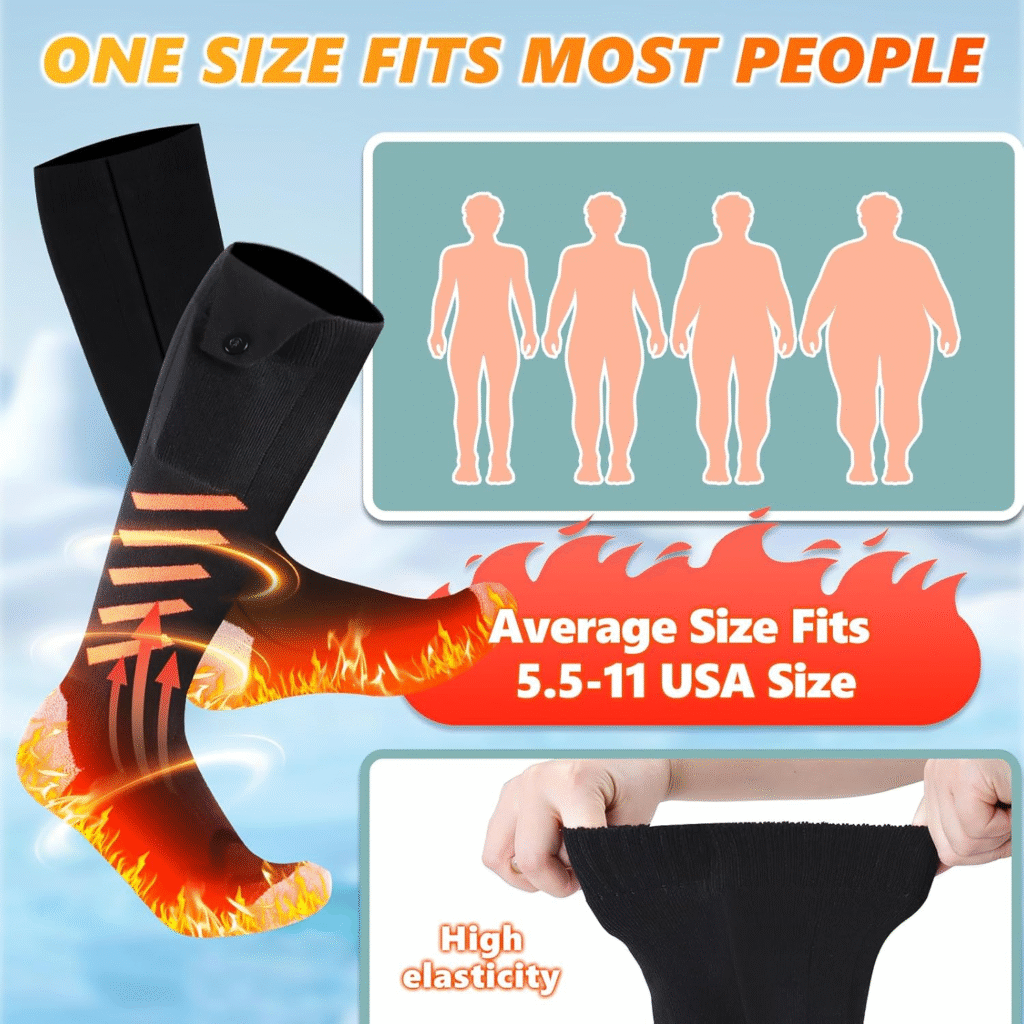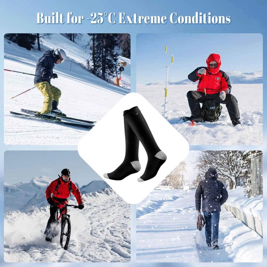 - Comfort and fit: the socks use a sleek, stretchy fabric that looks and feels more like normal athletic winter socks than stiff heating pads. That makes them practical for work, commuting, or outdoor sports.